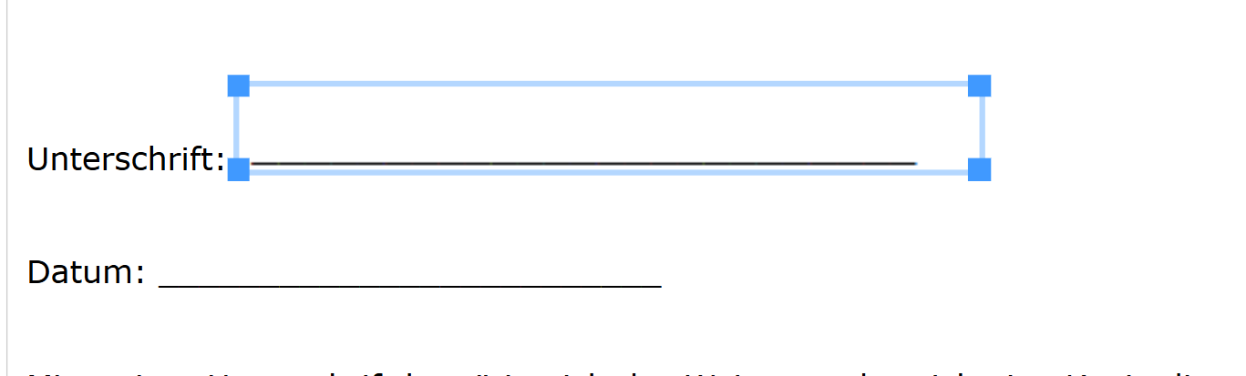 Fügen Sie ein weisses Bild in die Vorlage hinein, wo Sie die Unterschrift gerne hinterlegt hätten. Wenn Sie möchten, können Sie auch eine schwarze Linie als Orientierung hinterlegen. Das Bild können Sie selbstständig über Applikationen wie "Microsoft Paint" erstellen.