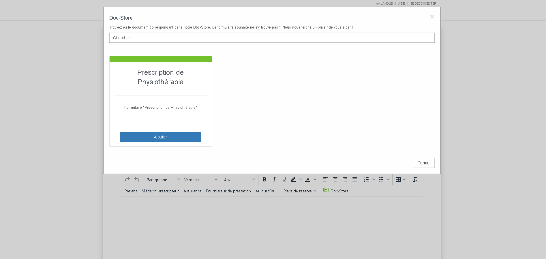 Notre dernière nouveauté est le Doc-Store, la bibliothèque centrale pour tous les modèles de documents tels que les garanties de prise en charge des coûts, les dossiers médicaux, les formulaires d'ordonnance, les évaluations avec calcul du score et bien d'autres encore.