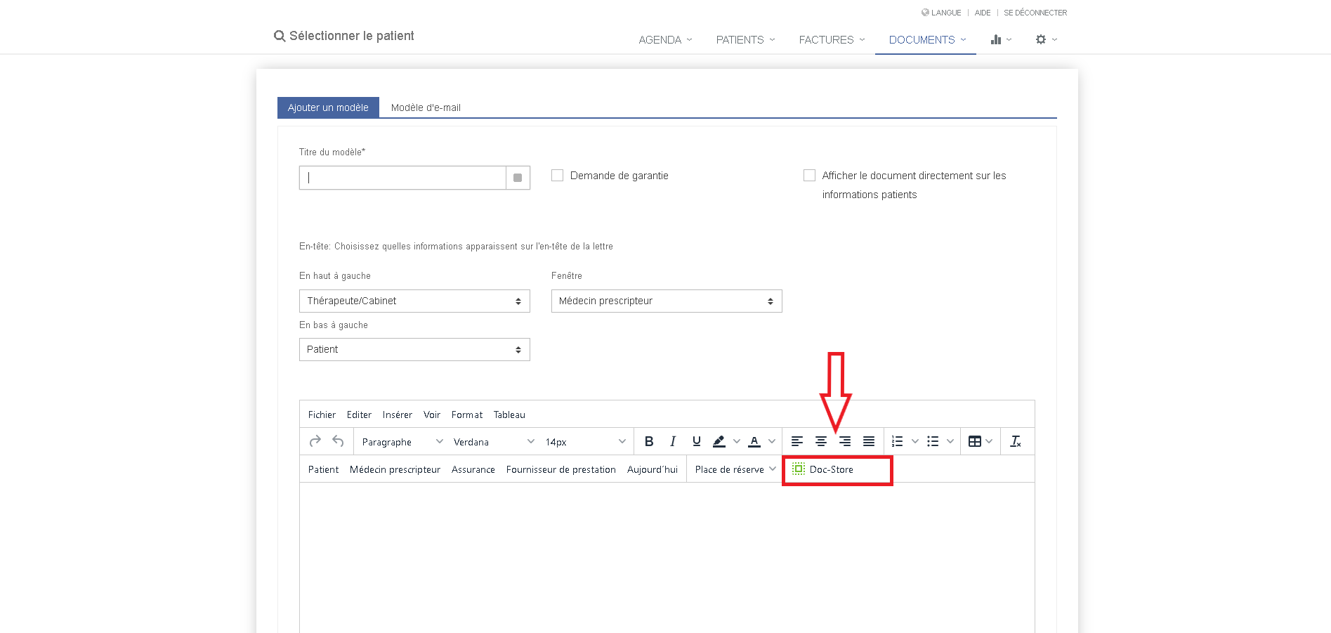 Vous trouverez le Doc-Store sous "Modèles" ou directement dans le document :