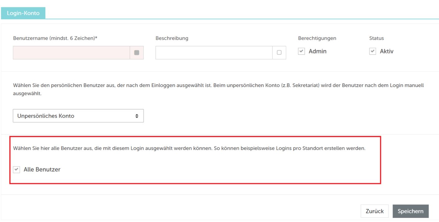 Weiterhin können Sie angeben, welche Benutzer pro Login-Daten angezeigt werden sollten. Beispielsweise können Sie so Angestellten den Zugriff auf Ihren persönlichen Benutzer verweigern.