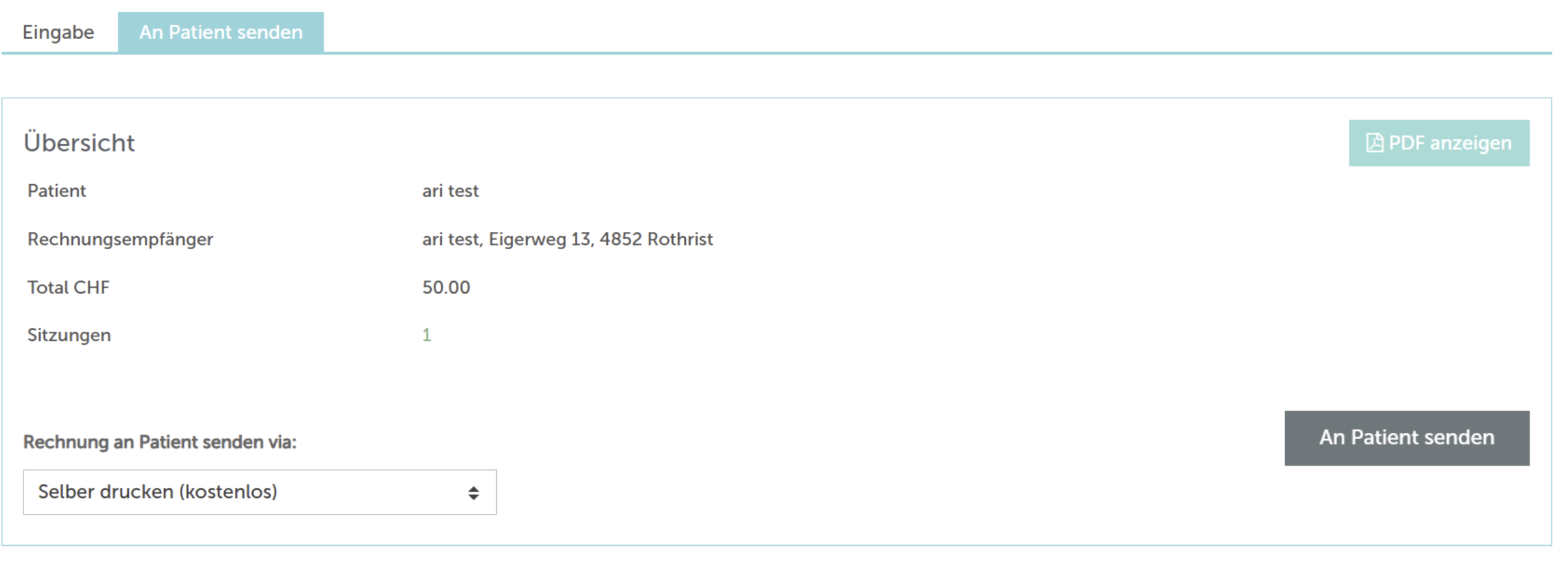 Wenn Sie draufklicken, sehen Sie, dass Sie diese nun an den Patienten selber schicken können.