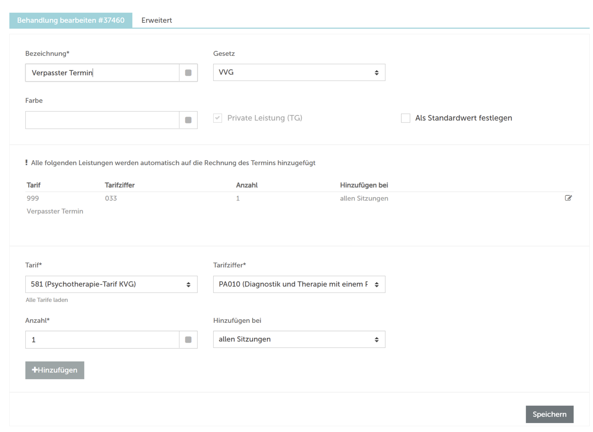 Danach legen Sie das ganze als Behandlung an: "Agenda" > "Behandlungen" und wählen als Gesetz VVG aus: