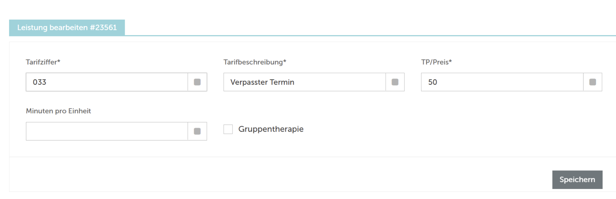 Wichtig: Unter "TP/Preis" können Sie den Preis pro Einheit hinterlegen. Im Feld "Minuten pro Einheit" können Sie einstellen, wie viele Minuten einer Einheit entspricht. Wenn Sie zum Beispiel bei "Minuten pro Einheit" die Zahl 5 hinterlegen, wird der Preis pro 5 Minuten verrechnet.