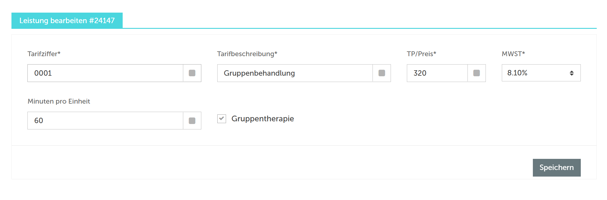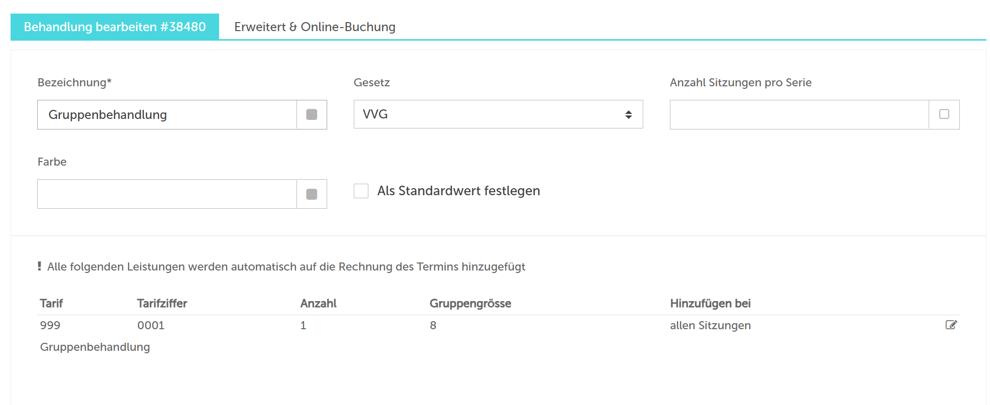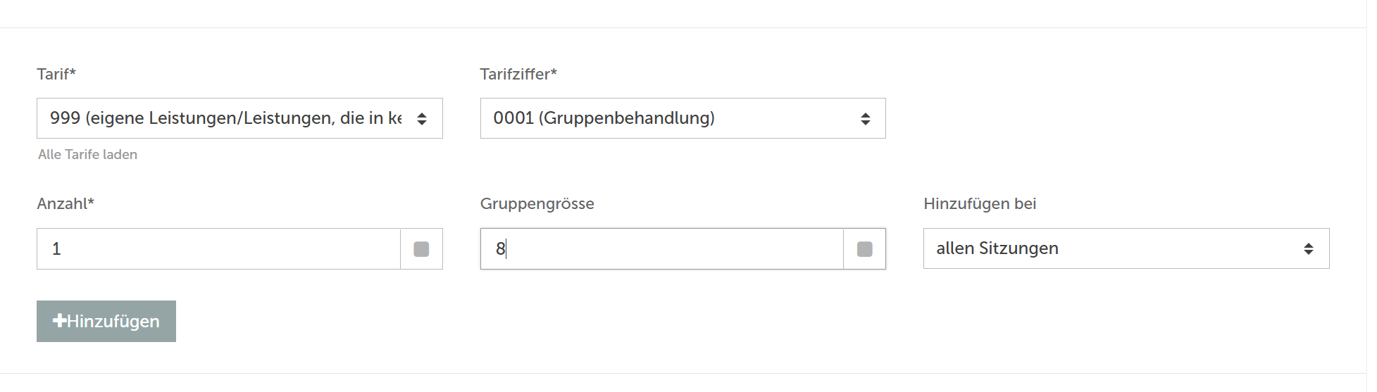2. Erstellen Sie den gewünschten Tarif und setzen Sie den Haken bei "Gruppenbehandlung".